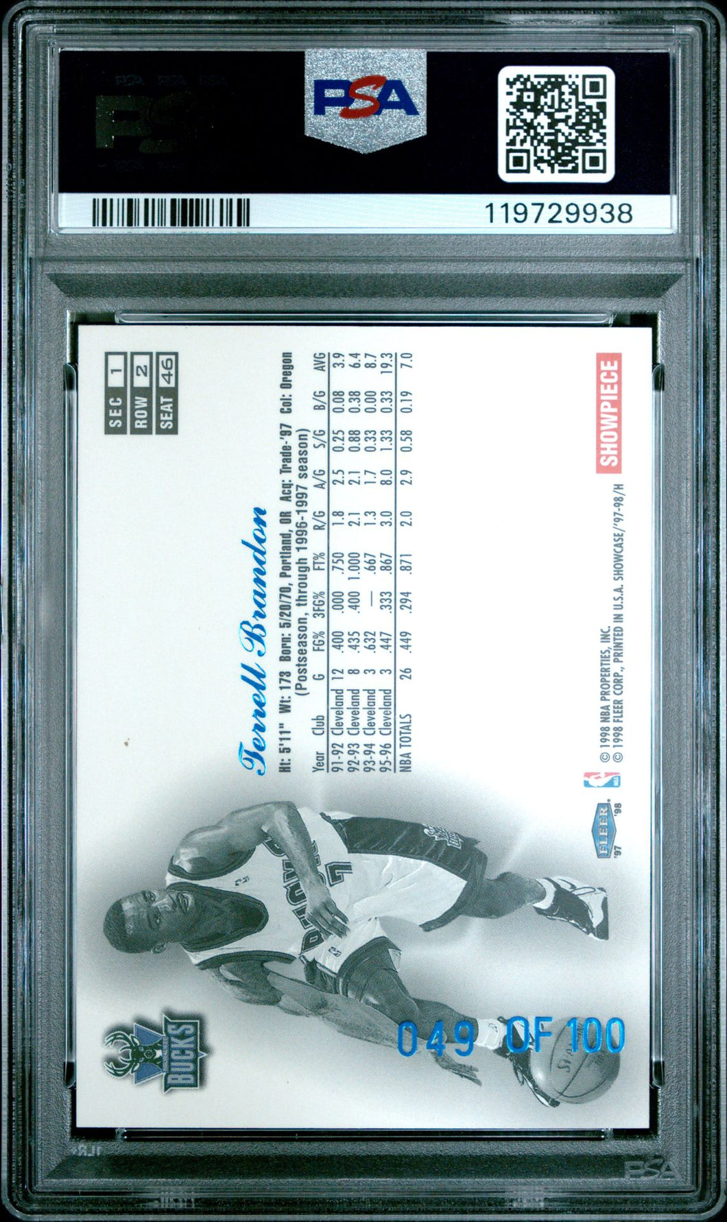 1997-98 Flair Showcase Basketball Card Terrell Brandon #46 Legacy Collection Row 2 /100 PSA 8
