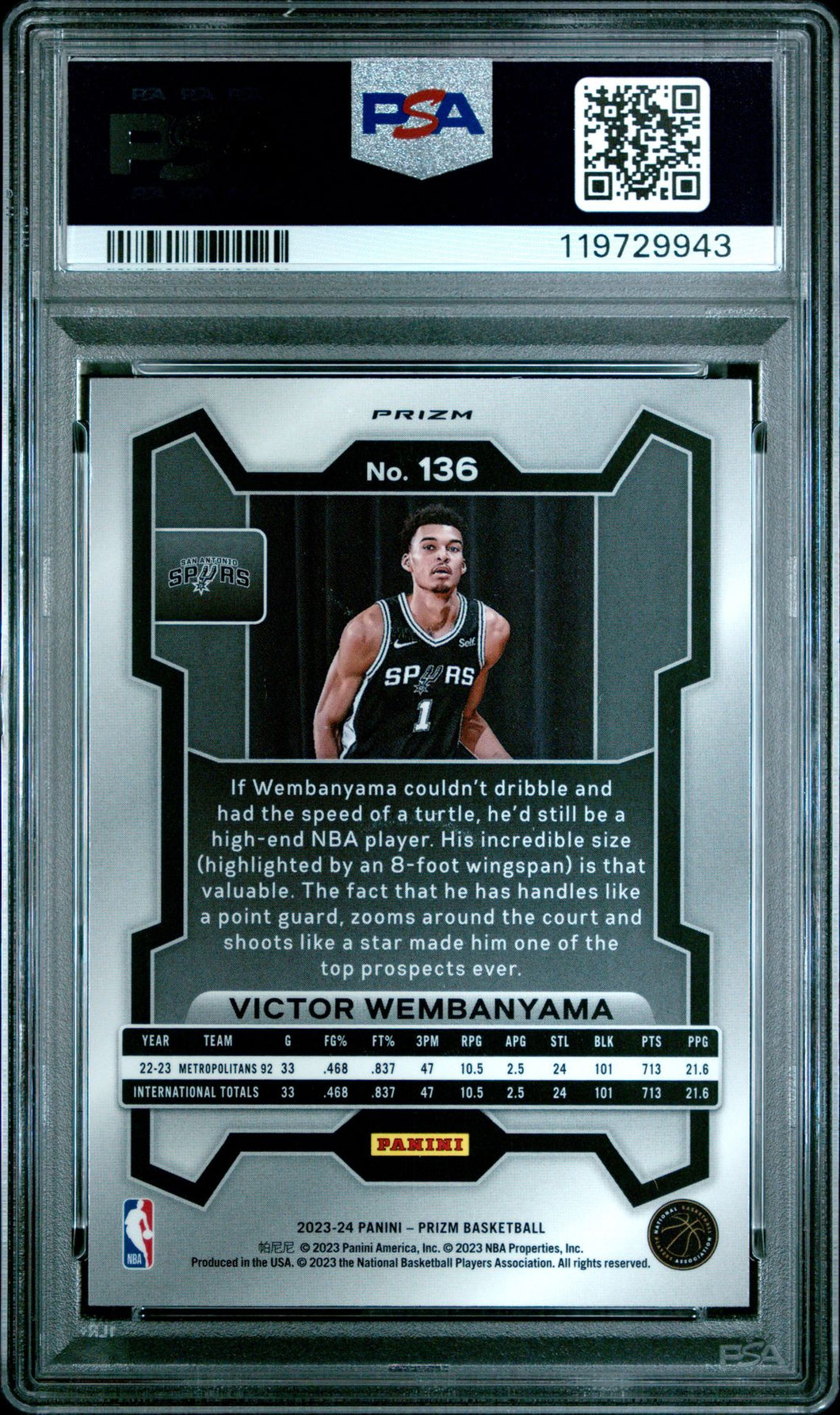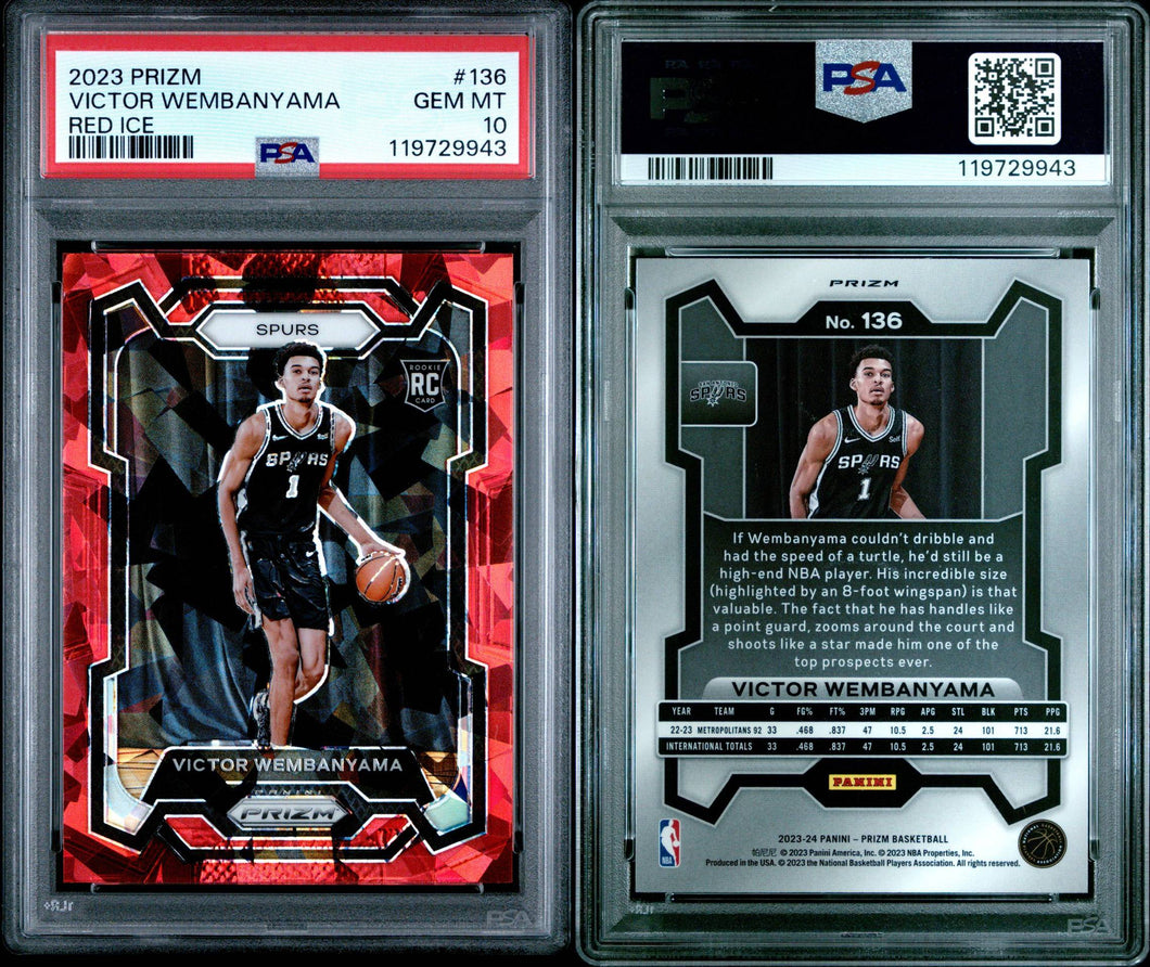 2023-24 Prizm Basketball Card Victor Wembanyama Red Ice Prizm RC #136 PSA 10