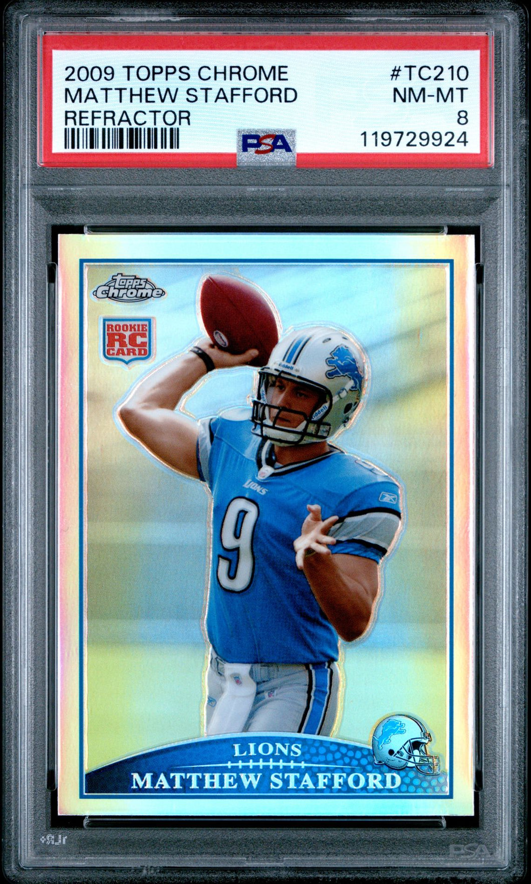 2009 Topps Chrome Football Card Matthew Stafford Refractor RC #TC210 PSA 8