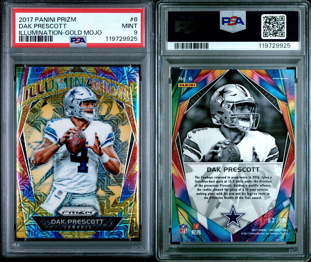 2017 Panini Prizm Football Card Dak Prescott Gold Mojo 3/10 Illumination PSA 9